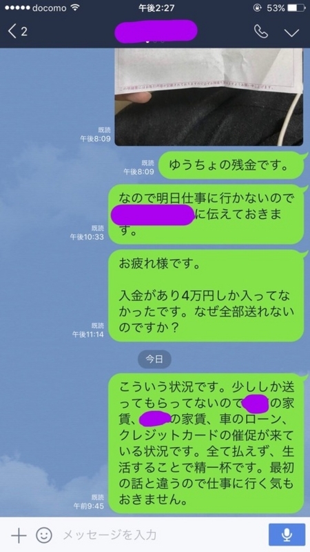 今の状況を簡単に話すと二ヶ月分の給料がまだ完全に支払われてなくて、2万円のみ振り込まれている状況である。